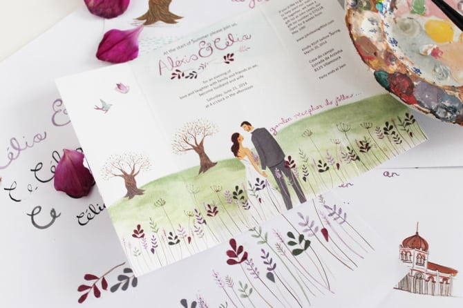 Такие приглашения точно будут эксклюзивными, особенно если вы придумаете для совместной фотографии интересный сюжет. Хотя даже самые обычные кадры из фотобудки вызовут у гостей теплые эмоции. А вот мини-портреты молодоженов, специально заказанные у художника – тренд, давно популярный за рубежом, но у нас только набирающий обороты. Такие приглашения на свадьбу выглядят немного наивно, по-детски искренне и душевно.
